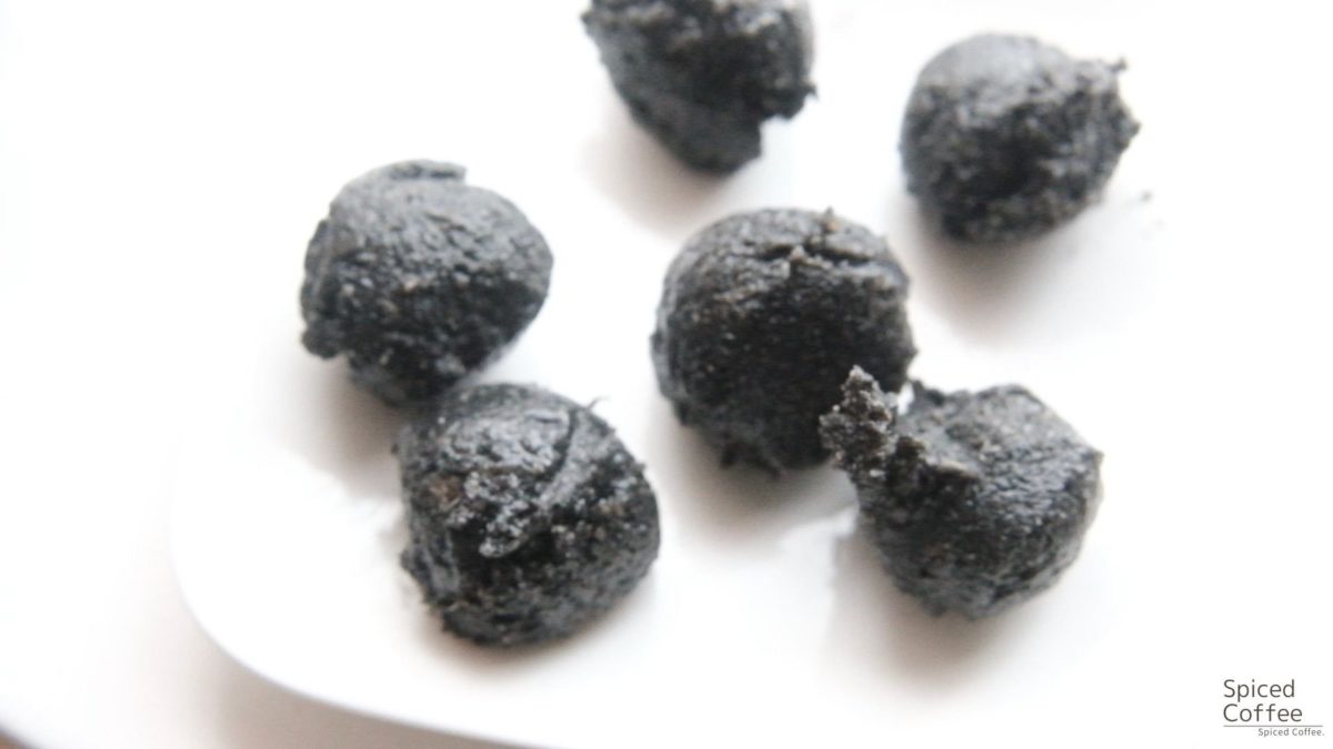 また、冷やし固めた胡麻あんやピーナッツあんは包丁で切って手で丸めておくのもいいですが、お水に都度くぐらせたスプーンを使うと楽ちんにまんまる餡ができておすすめです。