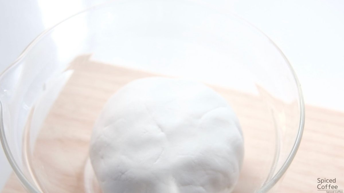 - 白玉粉に水を少しずつ入れて耳たぶくらいの柔らかさにします。